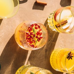 Beverages at the We Care Lobby Bar. Visitors go into wellness nirvana by strolling over a below ground glass vitrine of recovery crystals into a relaxing, light-filled living room where all the action is focused around the lobby bar.