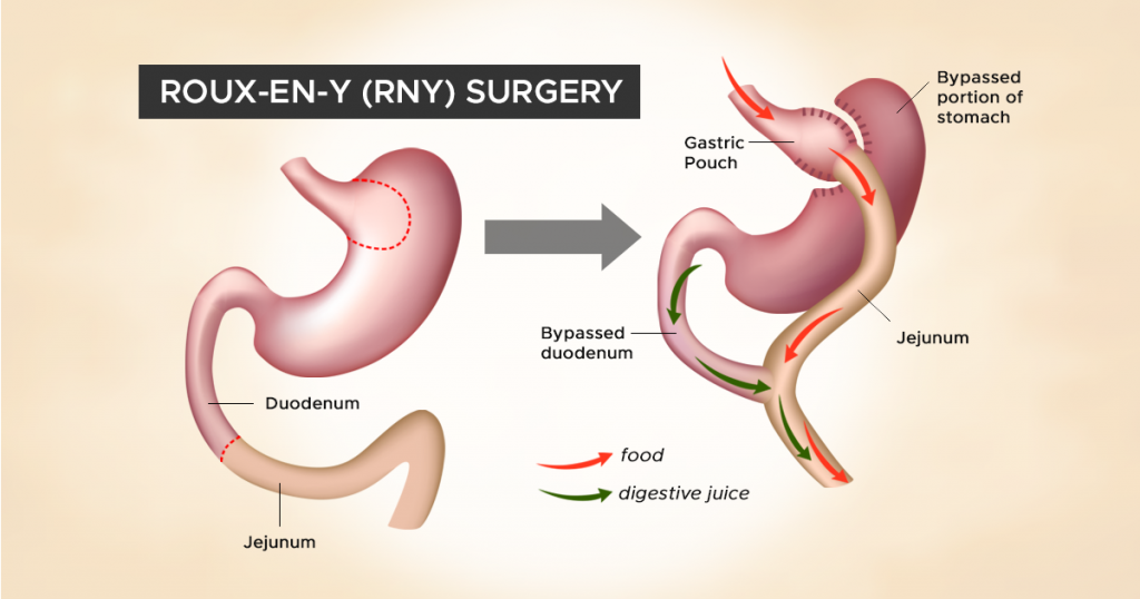 Introduced in the 1990s, the RNY surgery (laparoscopic Roux-en-Y gastric bypass, is now one of the most common types of bariatric surgery in the United States. he RNY surgery uses five small incisions (varying in length between an eraser head to a pinky tip) and carbon dioxide gas to inflate the abdomen like a balloon.